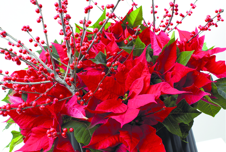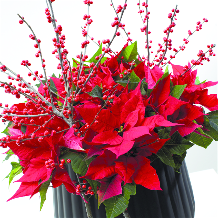 Ilex-Zweige (auch als Stechpalme bekannt) haben vor allem in Großbritannien und Skandinavien schon lange einen festen Platz in der Weihnachtsdekoration. Doch auch bei uns werden sie immer beliebter. Schließlich vereinen sie die Weihnachtsfarben Rot und Grün an einem Zweig und eignen sich ganz hervorragend zum Dekorieren und Basteln. Die über und über mit roten Beeren behangenen Zweige passen, mal mit, mal ohne Blätter, hervorragend zu Weihnachtssternen oder Amaryllis. In der Vase sind sie ein sensationeller Solist, aber auch ein perfekter Begleiter für Rosen, Amaryllis oder Kiefernzweige. Und wer mag, kann auch einzelne Zweige mit in die Erde eines Weihnachtssterns setzen.